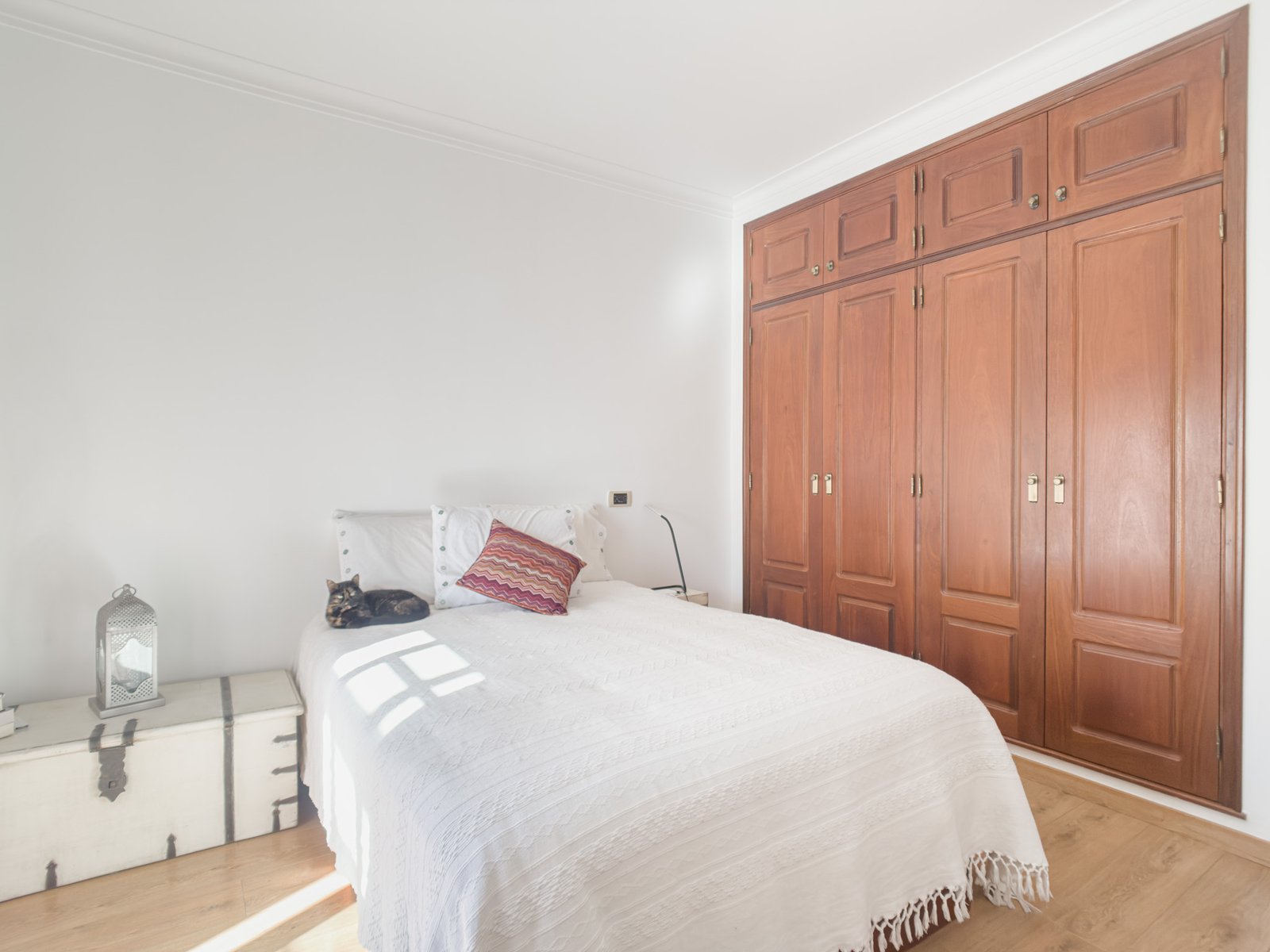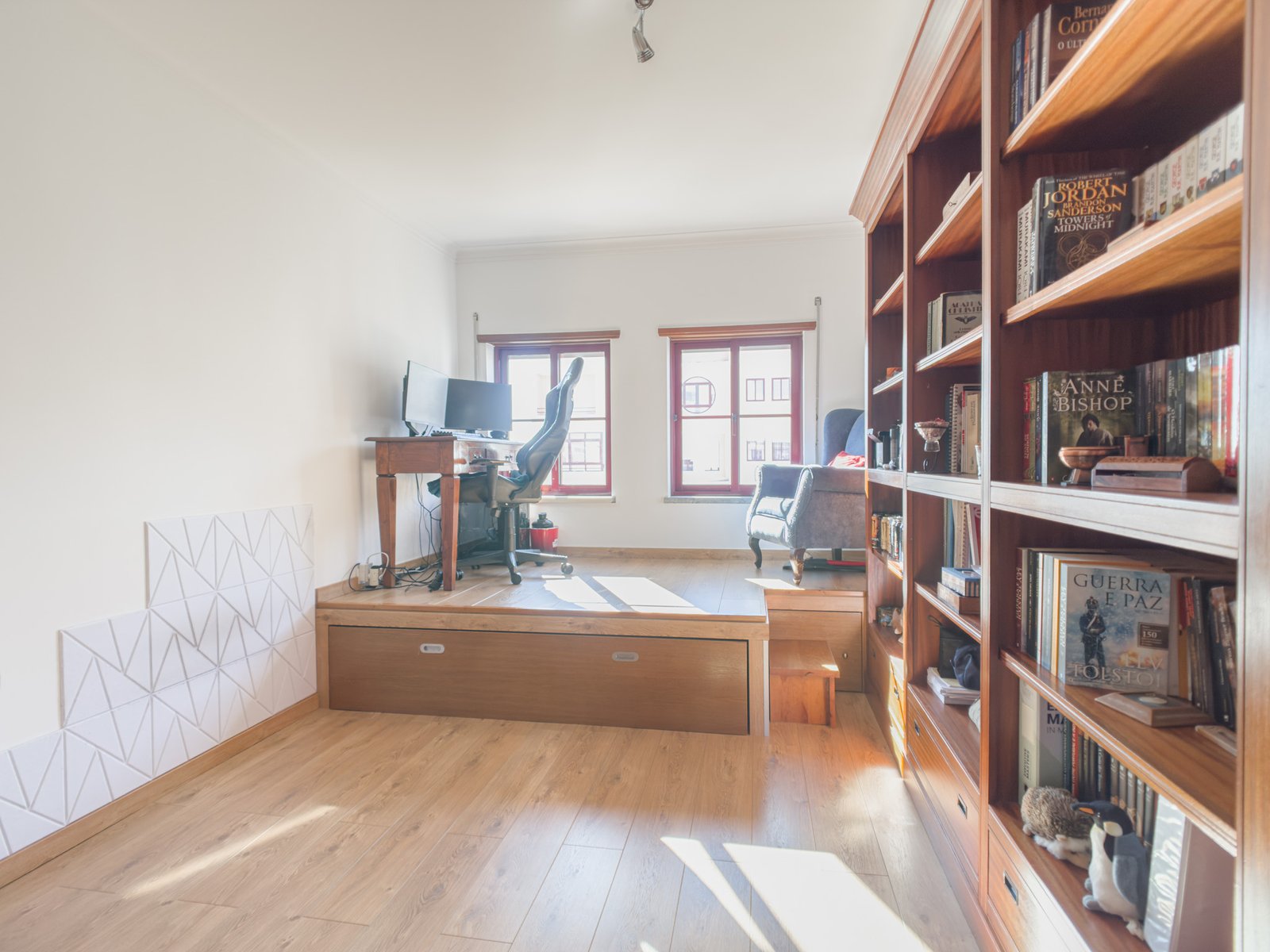 Os quartos possuem roupeiros embutidos, oferecendo boas áreas de arrumação.